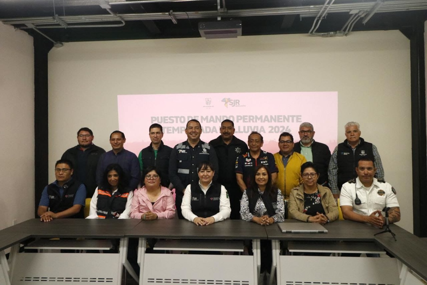 El presidente municipal de San Juan del Río, Roberto Cabrera Valencia, instruyó y supervisó la instalación y los trabajos que se realizan en el Puesto de Mando Permanente Temporada de Lluvia 2024 en la Estación de Bomberos número 3, ubicada en la comunidad de Casa Blanca, el cual tiene como propósito atender cualquier eventualidad derivada de las precipitaciones pluviales.