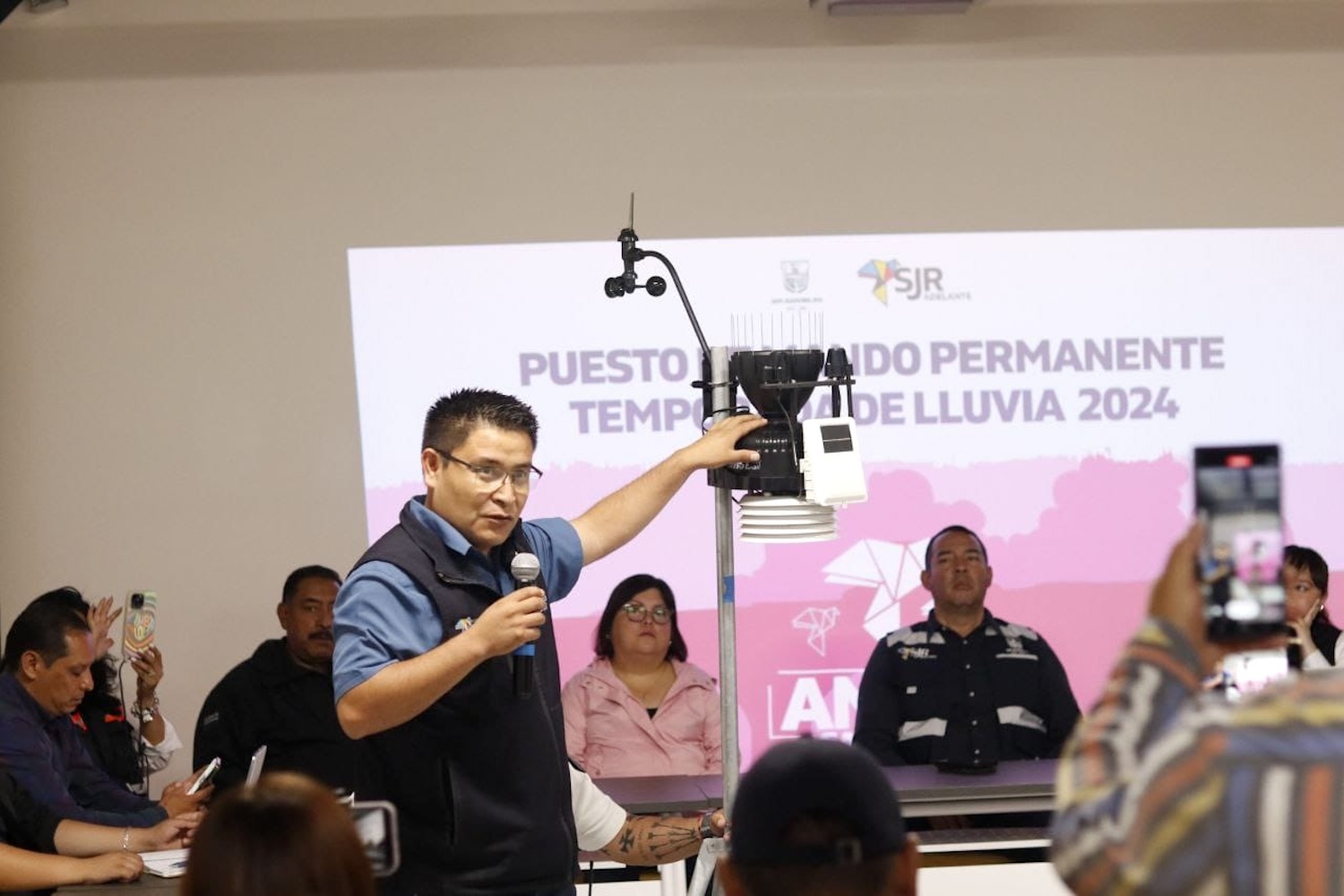 Durante la visita al Puesto de Mando, el jefe de Atención de Emergencias de Protección Civil, Francisco Hernández, mostró el funcionamiento de las estaciones hidrometeorológicas. Por otro lado, la coordinadora de Protección Civil Municipal señaló que, para este fin de semana, se pronostican lluvias de ligeras a moderadas, sin descartar alguna precipitación pluvial fuerte, así como temperaturas de 14 a 25 grados.