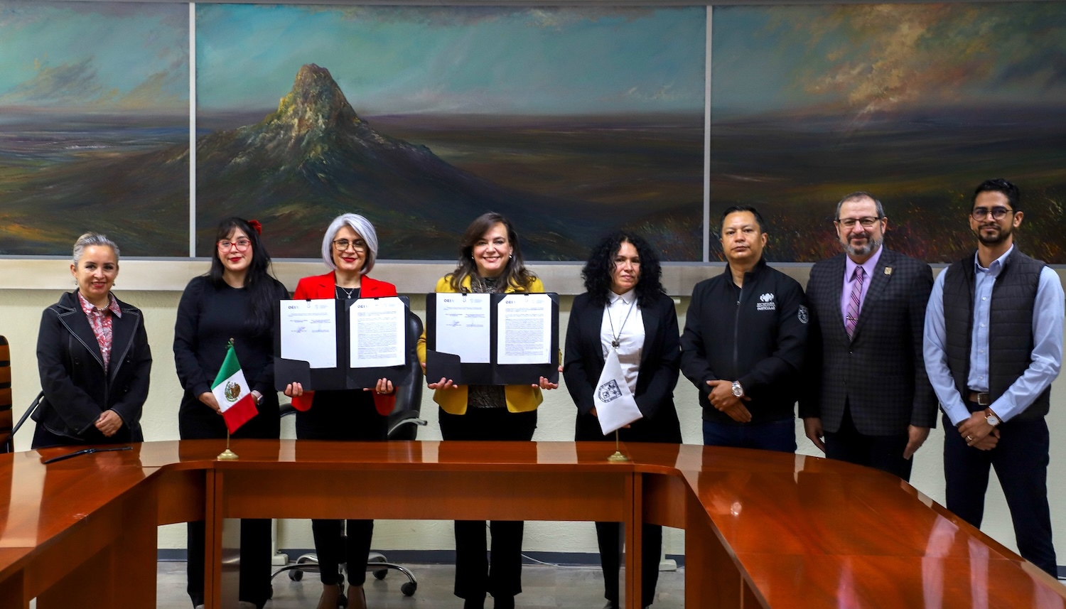 La rectora de la Universidad Autónoma de Querétaro (UAQ), Silvia Amaya Llano, firmó un acuerdo de cooperación con la representante permanente de la Organización de Estados Iberoamericanos para la Educación, la Ciencia y la Cultura (OEI), Xóchitl Patricia Aldana Maldonado, con el fin de difundir actividades integrales en favor de la academia, el arte, el conocimiento y los derechos humanos por una vida libre de violencia y relaciones pacíficas que beneficien a la sociedad, en lo que consideraron el inicio de una transformación social.