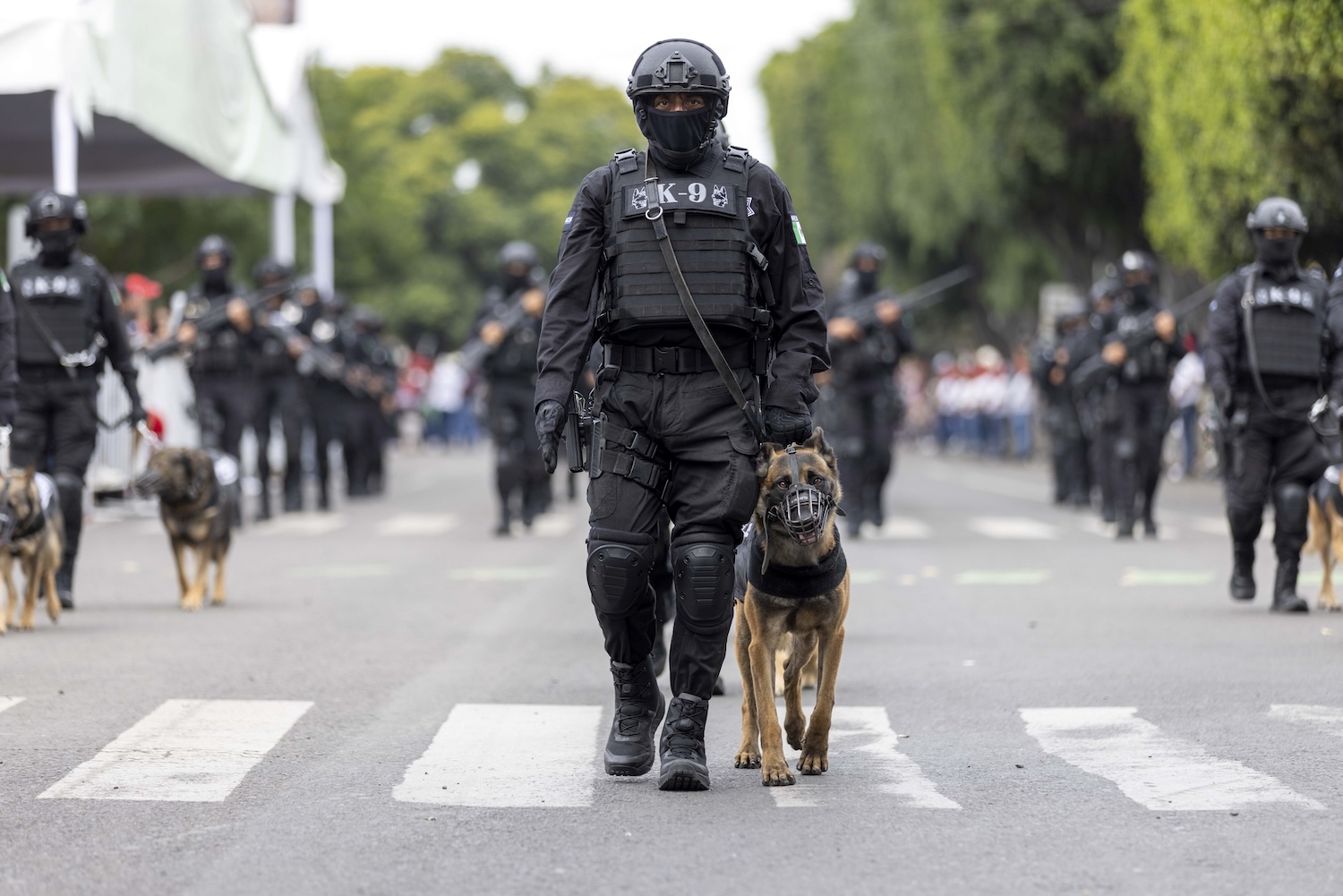Posteriormente, marcharon elementos y vehículos adscritos a diversos grupos tácticos de la Secretaría de Seguridad Ciudadana (PoEs), seguidos por personal de la Secretaría de Seguridad Pública Municipal de Querétaro.
