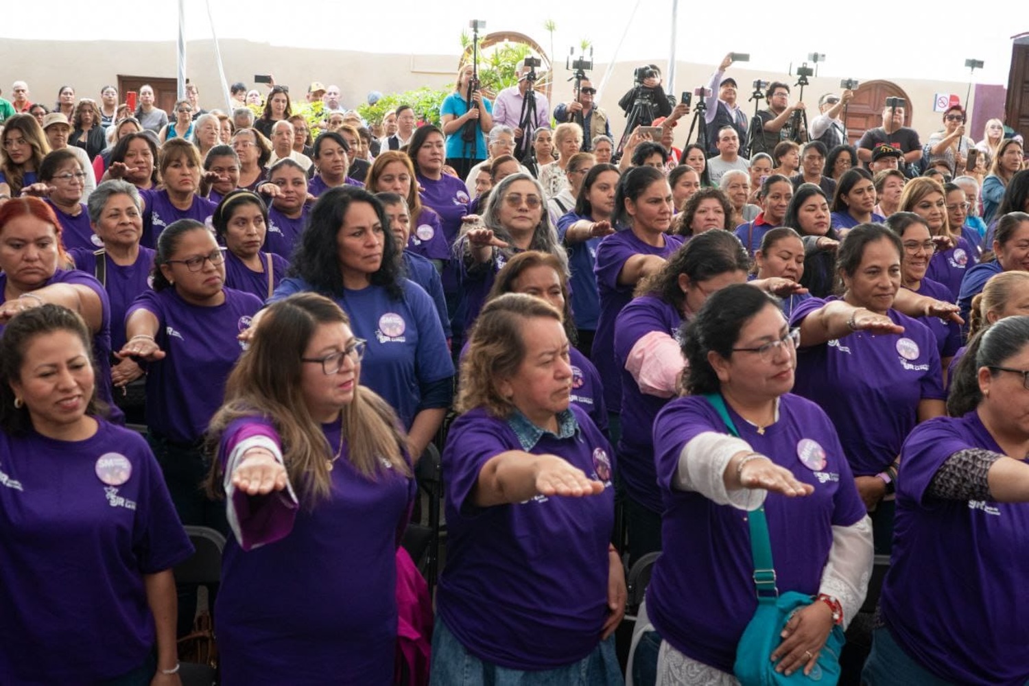 Toma Roberto Cabrera protesta a mujeres voluntarias como “Enlaces Púrpura”