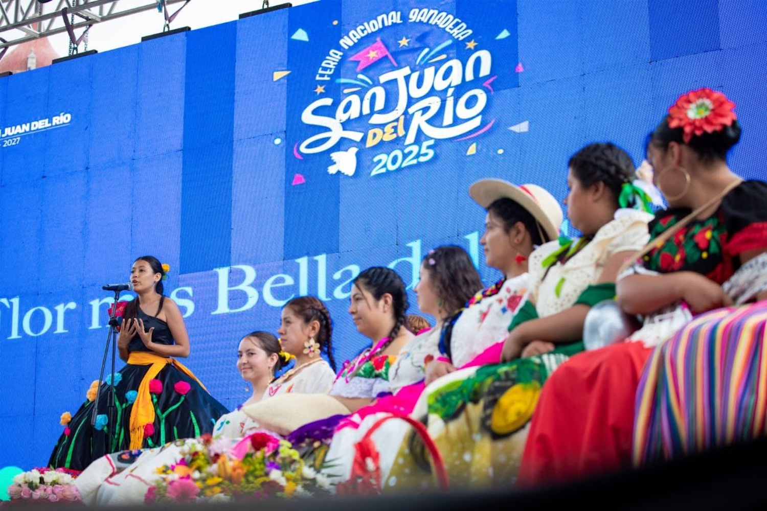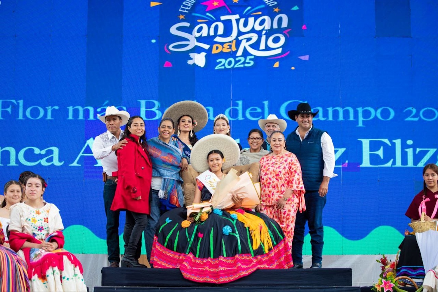 En representación del presidente municipal de San Juan del Río, Roberto Cabrera Valencia, el director de la Junta de Agua Potable y Alcantarillado Municipal (JAPAM), Toño Pérez Cabrera, colocó el sombrero a la triunfadora del concurso. Por su parte, la Reina de la Feria Nacional Ganadera San Juan del Río 2025, Hanney I, y La Flor Más Bella del Campo 2024, Arely Fernanda Ángeles Ángeles, pusieron la banda a la ganadora.