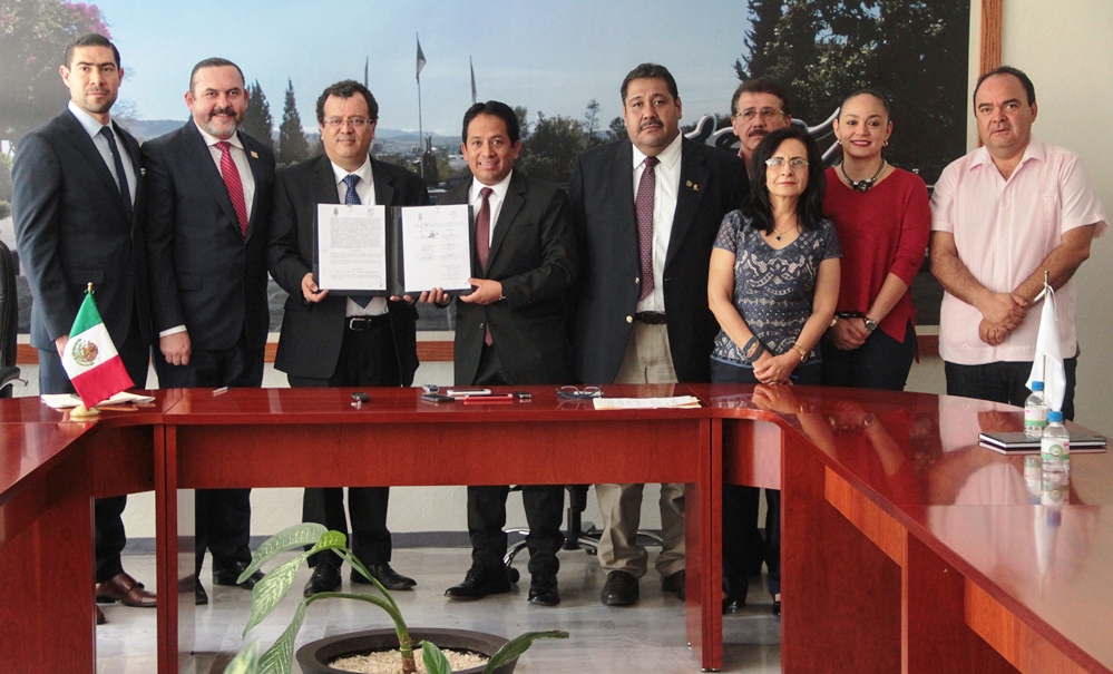 En la firma del convenio también estuvieron el Abogado General de la institución, Mtro. Óscar Guerra Becerra; la directora de Investigación y Posgrado de la UAQ, Dra. Flavia Loarca Piña; el director, el secretario Académico y la secretaria Administrativa de la FCA, Dr. Arturo Castañeda Olalde, Mtro. Martín Vivanco Vargas y Mtra. Patricia Gómez de la Cortina respectivamente, y el coordinador de dicha maestría, Dr. Héctor Toledo Rosillo.