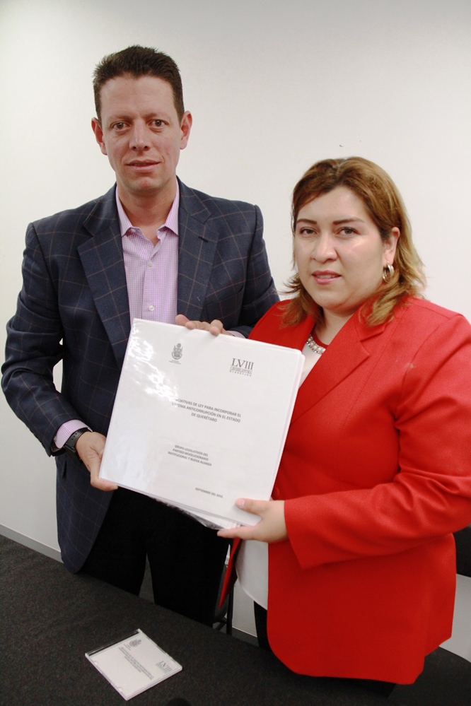 Los diputados Ma. Antonieta Puebla Vega y el coordinador de la Fracción Parlamentaria, Mauricio Ortiz Proal, presentaron un conjunto de iniciativas que reforman y adicionan diversas leyes con la finalidad de construir el sistema estatal de combate, lucha y prevención contra la corrupción.