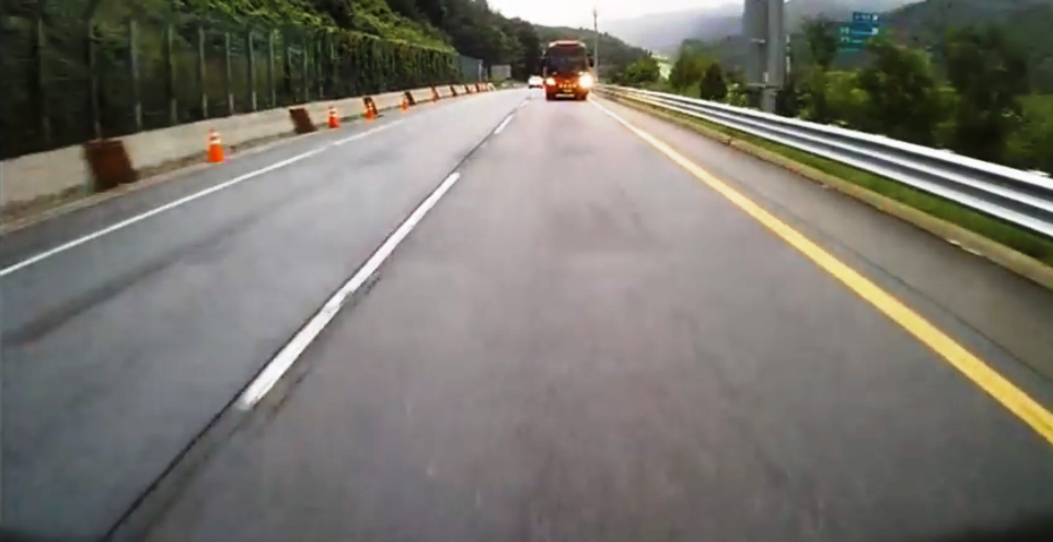 La escena sucedió a la entrada de un túnel en Corea del Sur, y el cambio de carril se produjo a tan solo unos instantes de que el autobús turístico embistiera a toda velocidad a varios autos que se encontraban en la carretera, dejándolos despedazados.