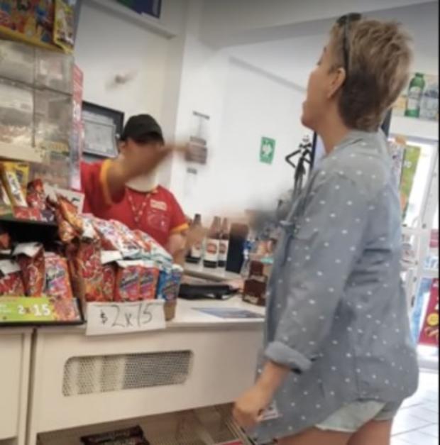 En las imágenes, se puede ver cómo la mujer estalla y trata de defender a su mamá, después de que los cajeros le pidieron que también pagara una bolsa de cacahuates que no dio junto a los productos que se iba a llevar.